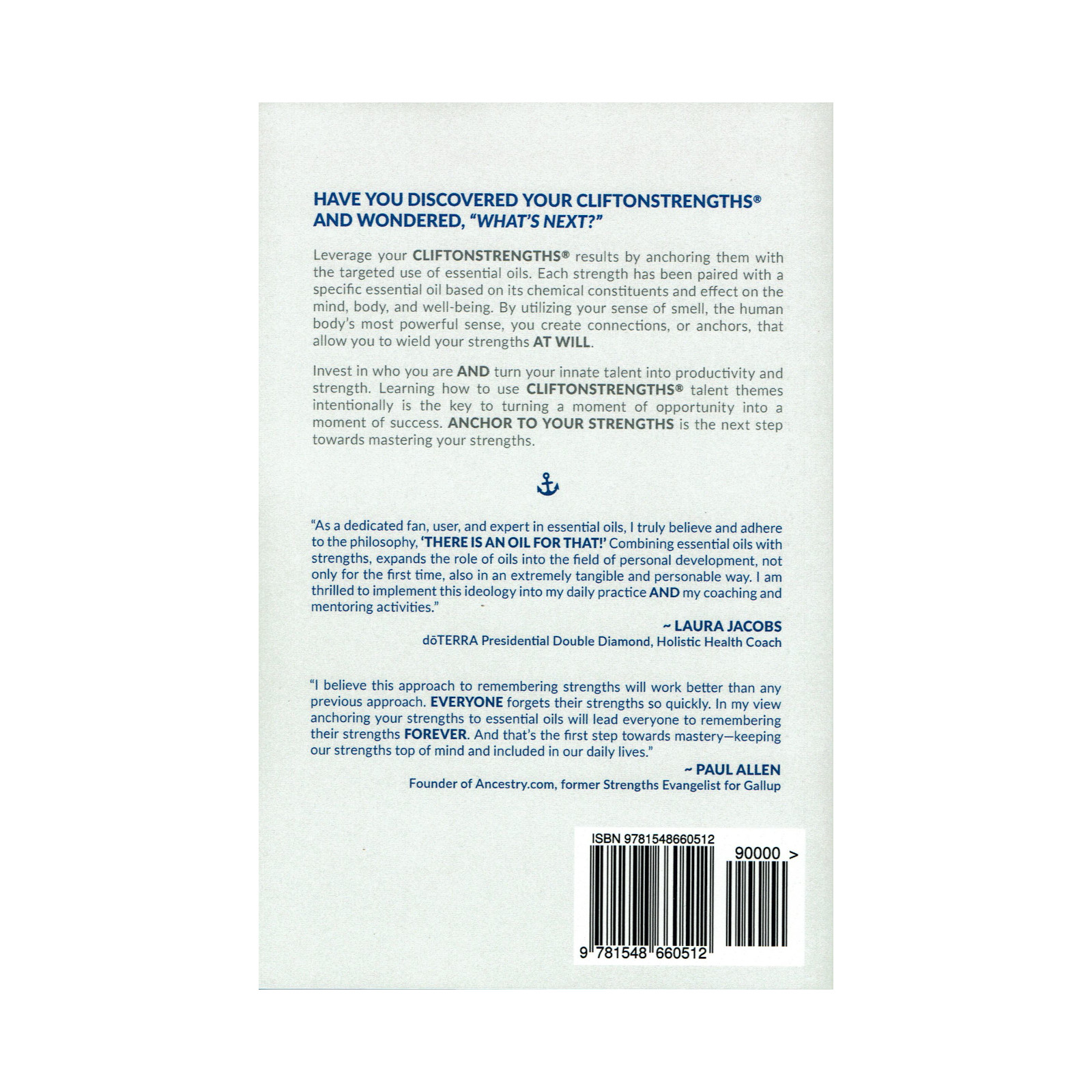Potencialize os seus resultados CliftonStrengths®, 'ancorando-os' com o uso direcionado de óleos essenciais. Cada força foi combinada com um óleo essencial, com base nos seus constituintes químicos e efeito na mente, corpo e bem-estar geral. Ao utilizar seu olfato - o sentido mais poderoso do corpo humano - cria conexões, ou âncoras, que o permitem utilizar as suas forças.