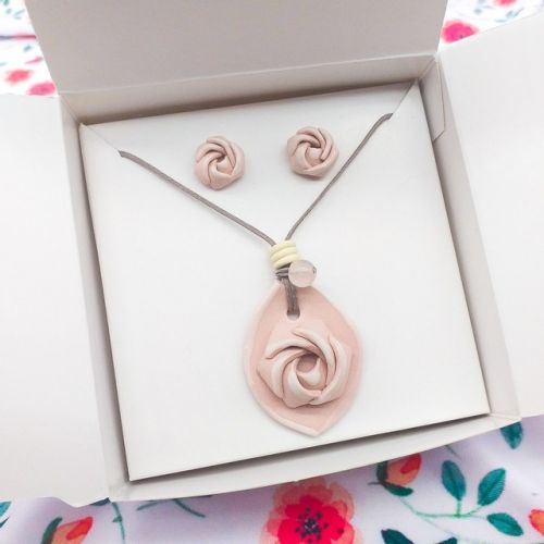 Rosa Damascena - conjunto de brincos e colar aromático