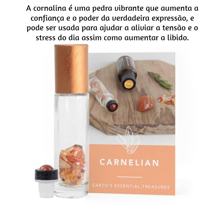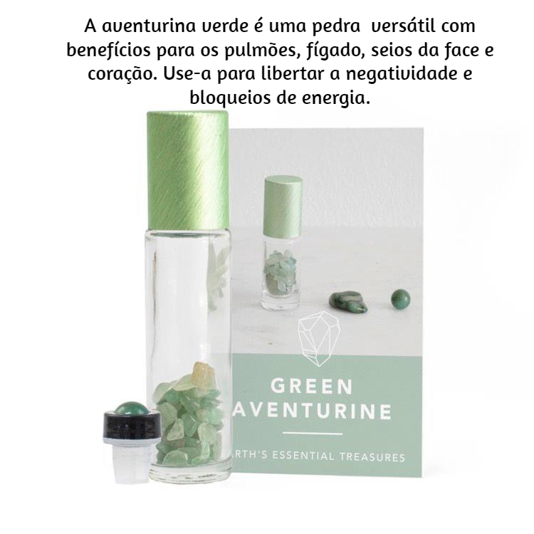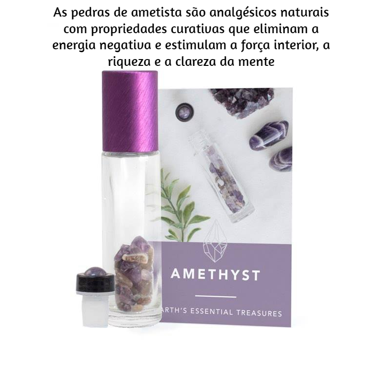 Inclui: 10 roll on transparente 10 ml, 10 tampas aluminio, 10 doseadores de pedra natural, pequenas pedras naturais, 10 pequenos cartões detalhando as áreas de bem-estar e emocionais favoráveis a estas pedras assim como os óleos essenciais sugeridos para complementar o seu uso.